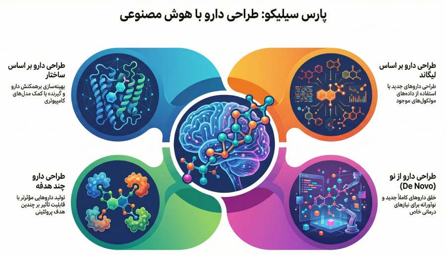 پارس سیلیکو یک شرکت پیشرو در زمینه خدمات طراحی دارو با استفاده از هوش مصنوعی است. این شرکت با بهرهگیری از دادههای بزرگ، یادگیری ماشین و شبیهسازی مولکولی، راهحلهای نوآورانه ای برای کشف، توسعه و بهینهسازی داروهای جدید ارائه میدهد.