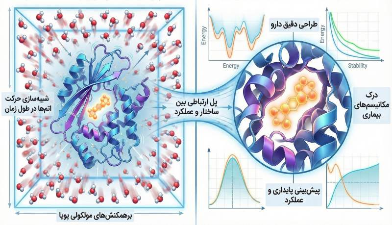 پیشبینی تحول وابسته به زمان سیستمهای زیستی در سطح اتمی؛ از برهمکنشهای پروتئینی تا طراحی دارو.